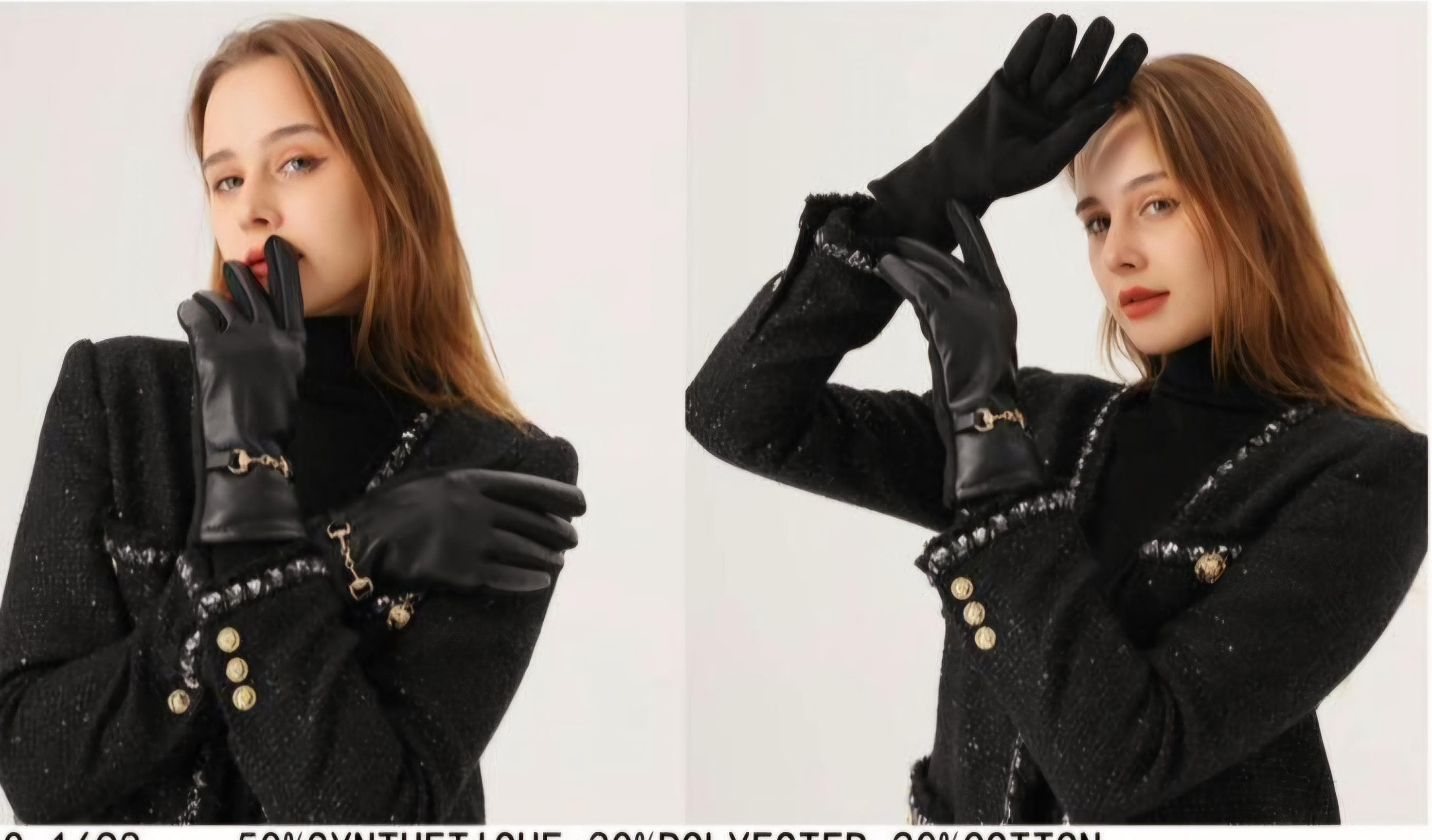 Soft vegan leather with gold buckle detail. Designer gloves, suedette hands with touch screen Scroll embroidery for style and warmth. Mocca, black, beige, chocolate One size fits allKM1698