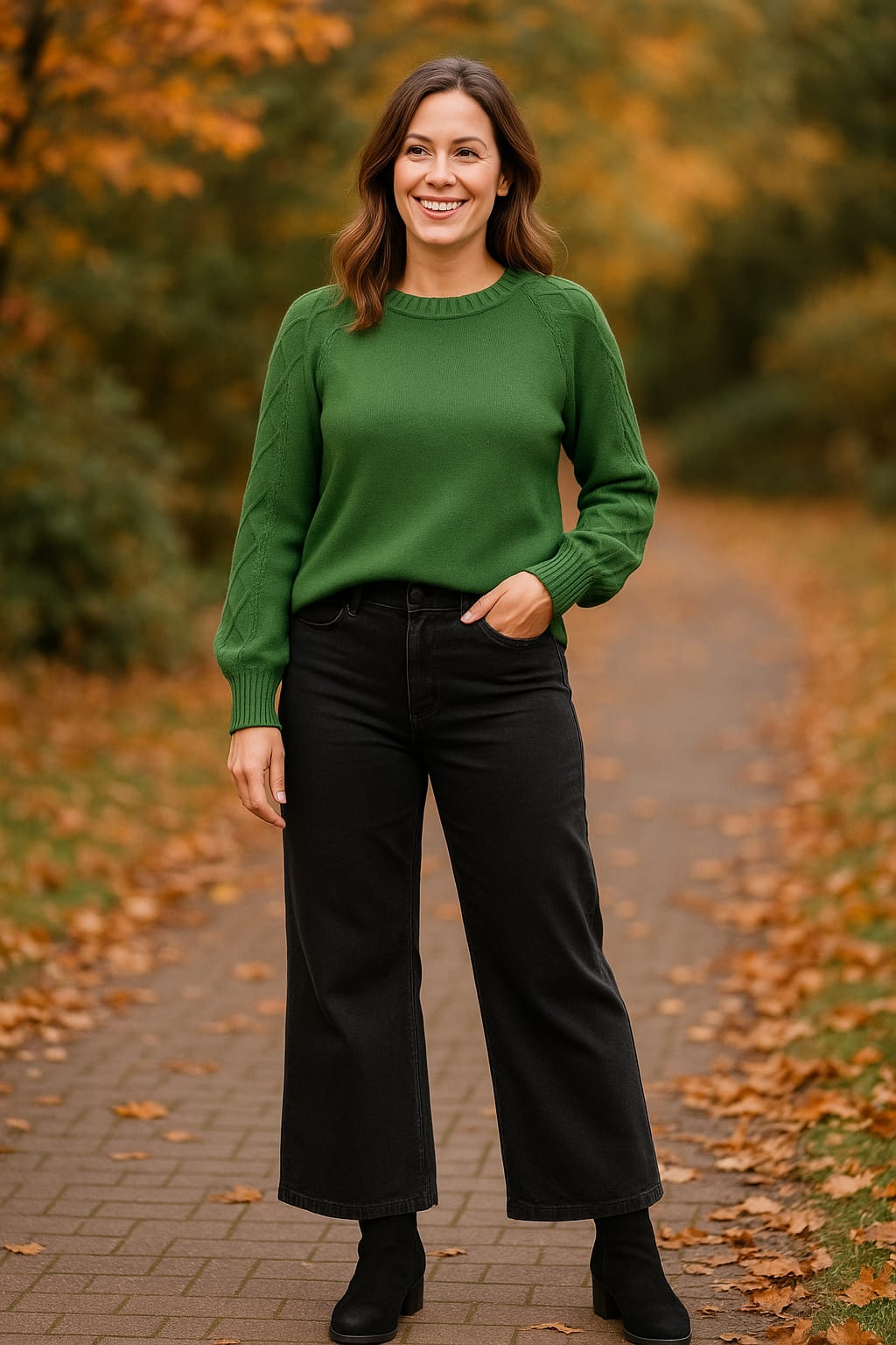 New arrivals Super soft, stretch knit jumper.Crew neck, long sleeves with diamond shape cable detail. Ribbed cuffs and hem. SM fits upto 14 UKLXL fits upto 18 UKPoly viscoseKm612