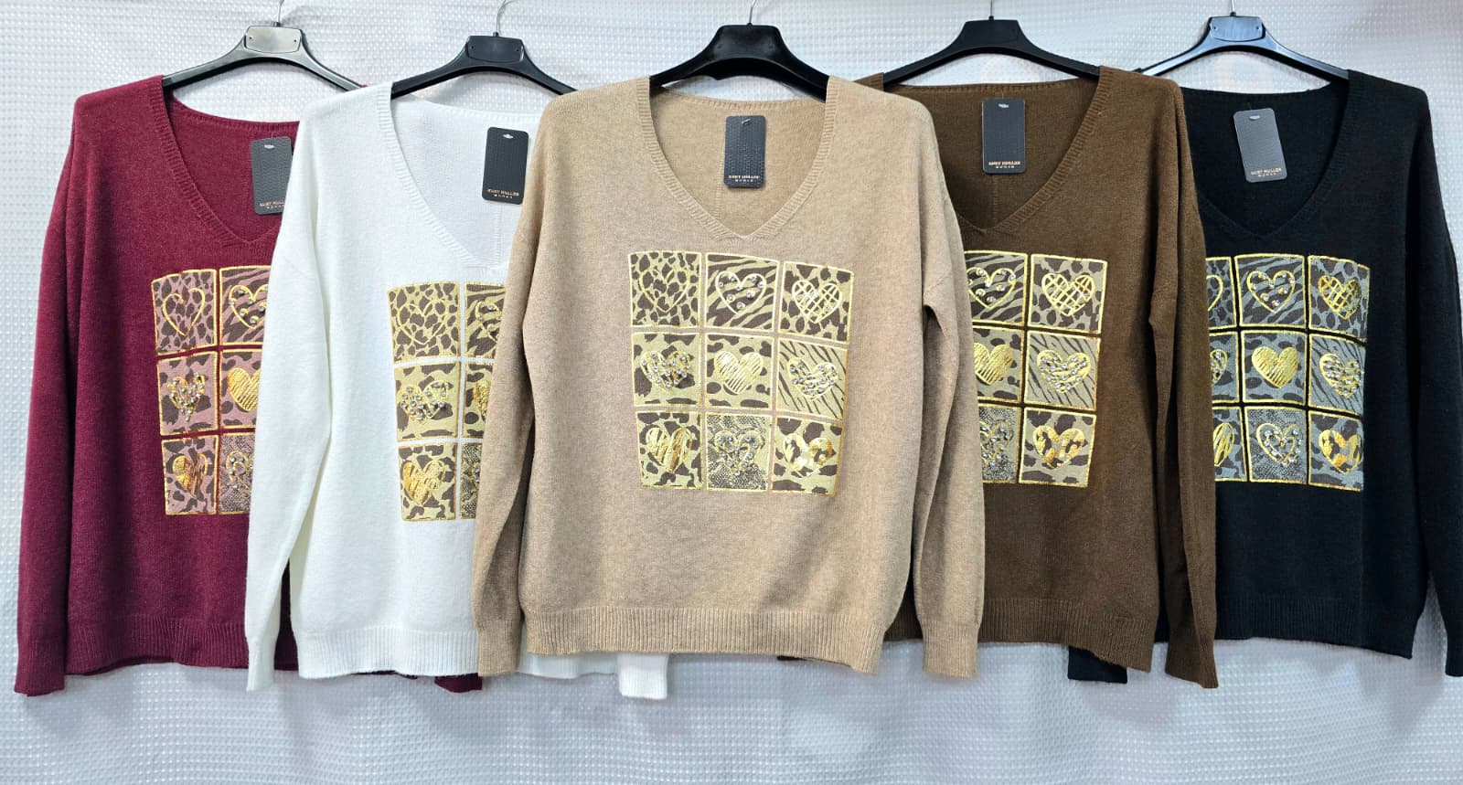 New season collection.A stunning fine soft touch Vee neck knitted top.Heart embellished detail Relaxed fit. Perfect for layeringOne size fits up to size 16 UKCols- wine, white, beige, chocolate and blackSold any colour any qtyMade in Italy 🇮🇹