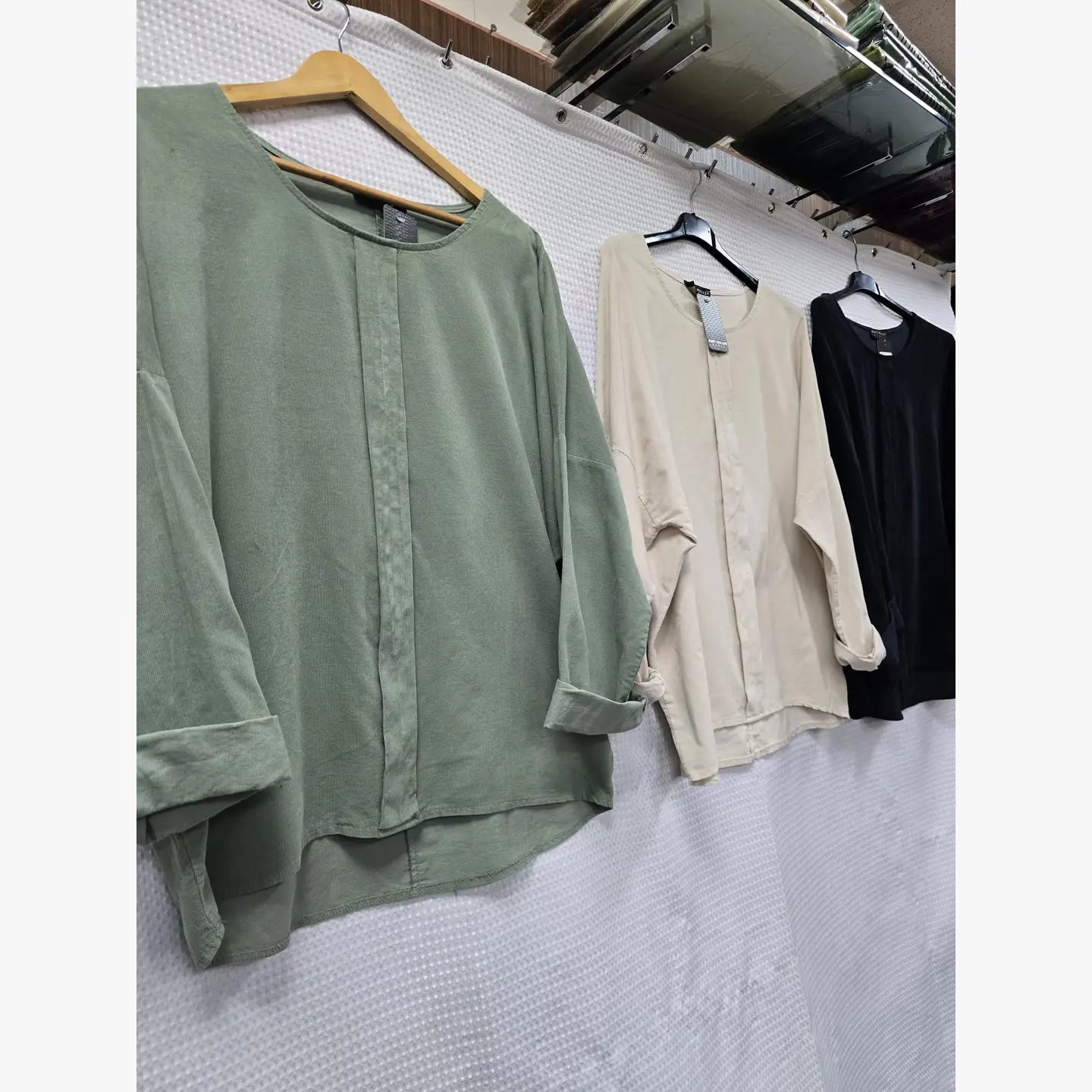 A soft velvet ribbed Vee top in soft cool pure cotton. Turn up sleeve detail Curved hem, One size fits 8 to 16 UKPure cottonKM81563