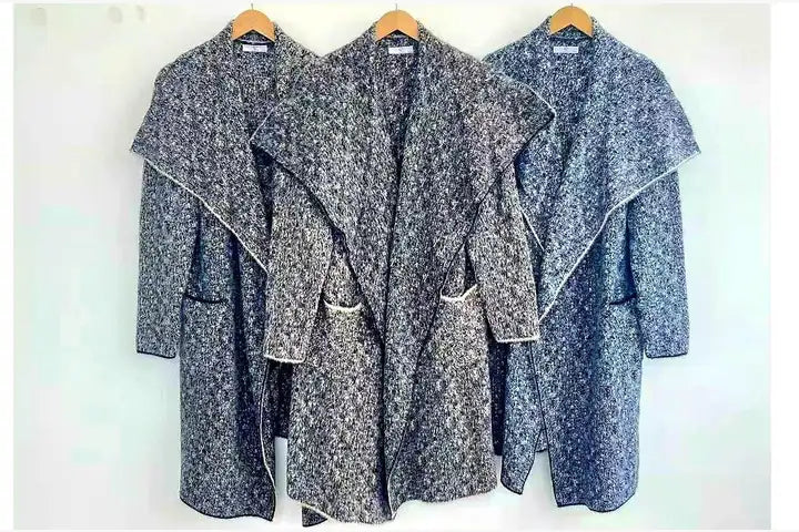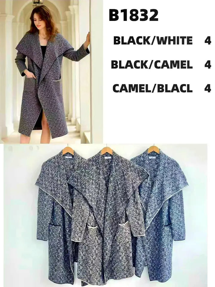 SM 10-14 LXL 14-183 coloursSold minimum 1 of a size per colour = 2 per colour Tonal print long sleeve coatigan. Waterfall lapel collar. Two front pockets. Team with our tops and jeans. Stylish and on trend. Cosy relaxed fit.Polyester polyamide mixKM1832