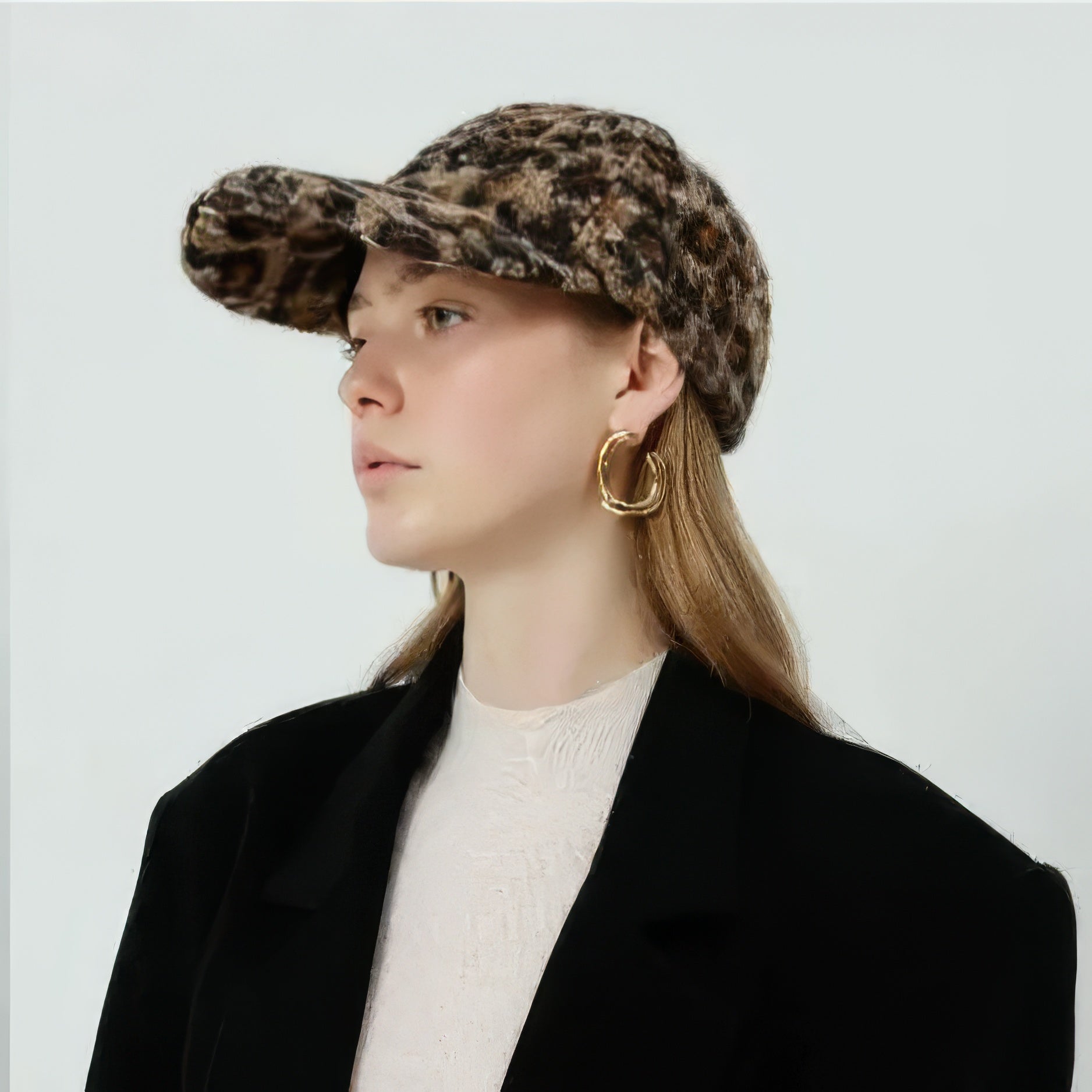 • This seasons must have Accessory a boucle Leopard Soft faux fur baseball hat one size with adjustable back velcro fastening. Hard peak flap , stylish and trendy.
