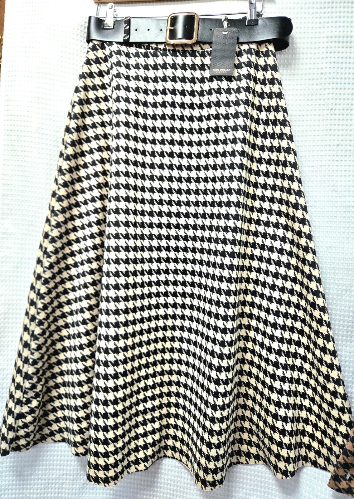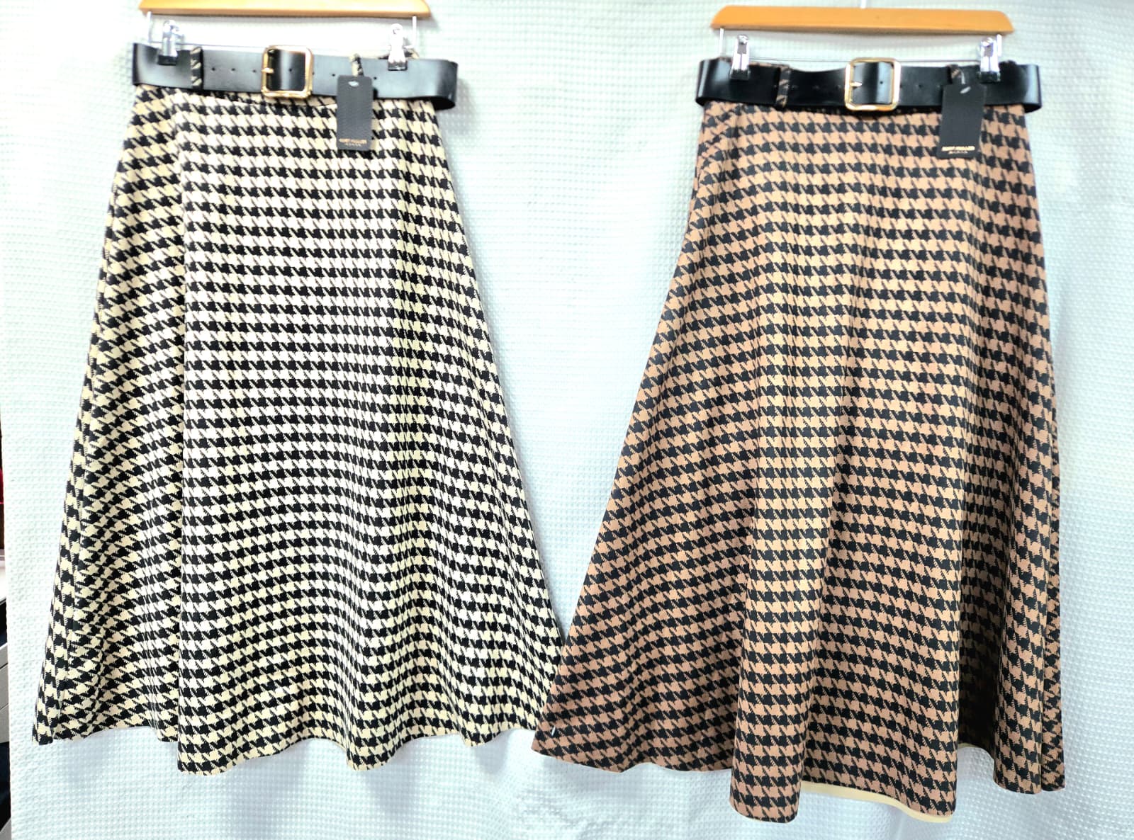 New arrivals Trendy and stylish dogtooth check printed suedette skirt with pu leather look adjustable belt. Relaxed fit. One size 8-16 UK. Super soft touch. Top quality. Made in Italy. Cols- chocolate and cream. Sold any colour any quantityKM23296