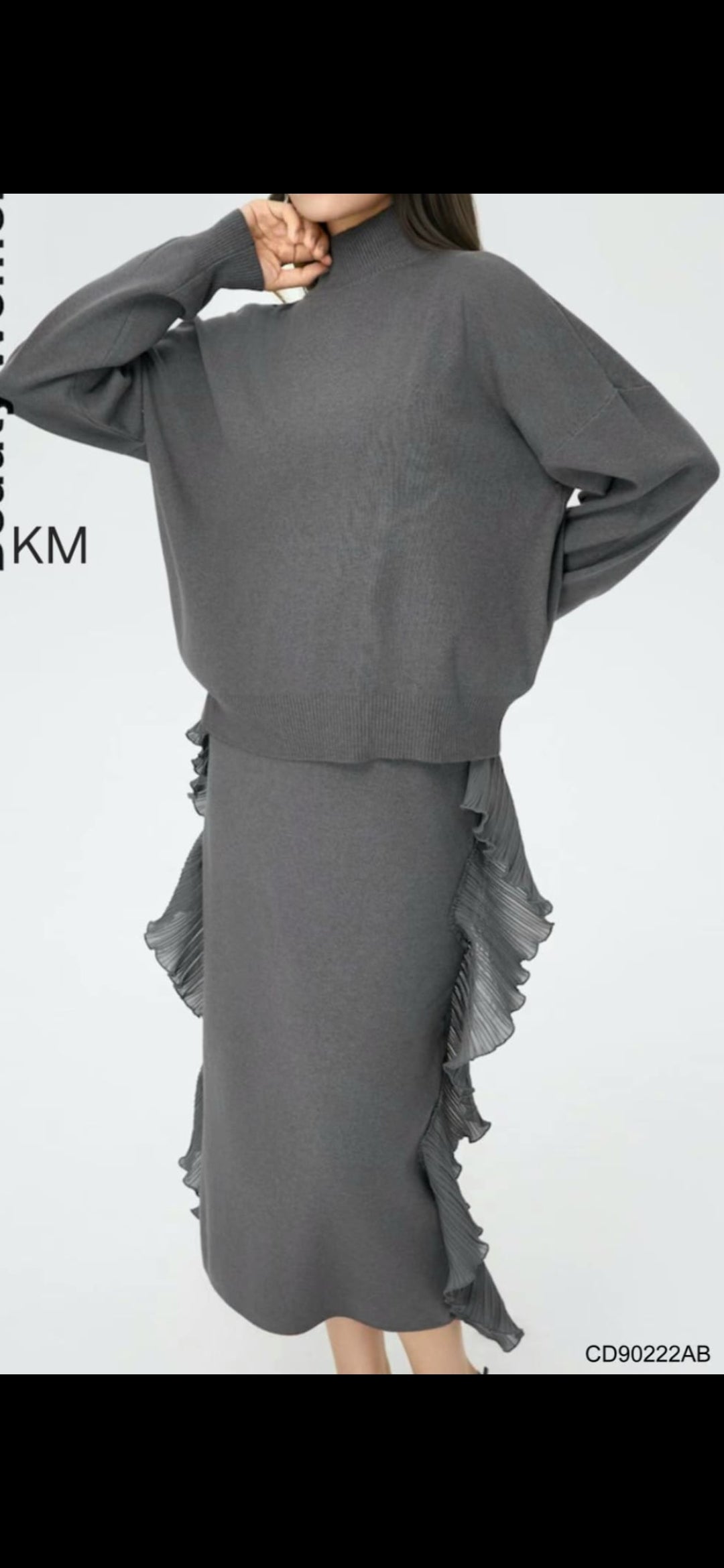 Knitted Co-ord Two Piece Set with Frilled Edge