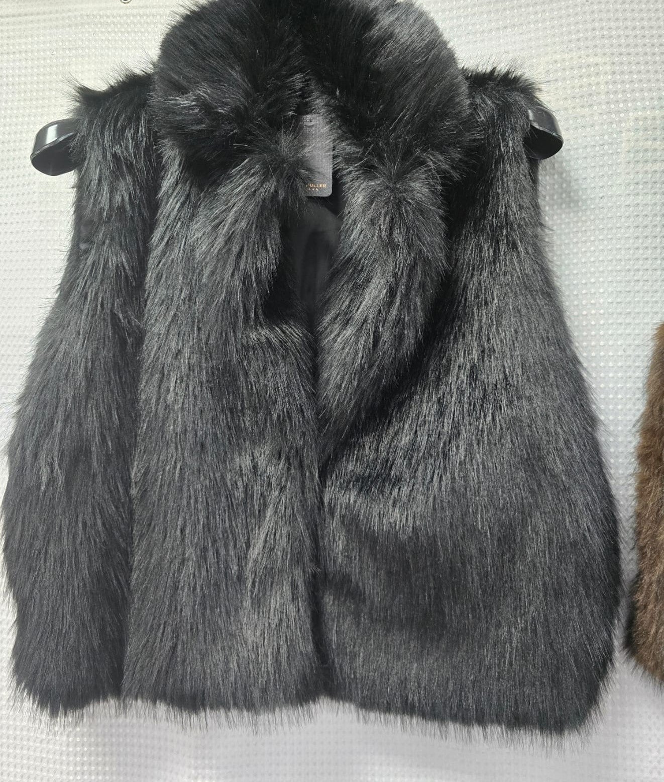 A stunning luxurious soft faux fur Gilet. Perfect for layering.Clasp fastening 2 side pocketsFully lined One size ( fits size 10-16) ukCols- blackSold any col any quantity Made in Italy