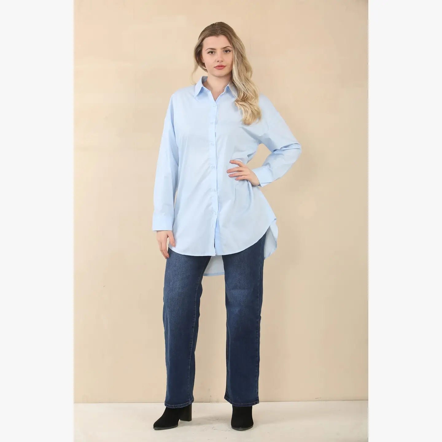Soft high low cotton shirt, satin finish with poly elastane Great for layering under jumper or with belt One size 10 to 18 UKWhite Black Royal, Sky, Lime green, Magenta and chocolate. Top quality Sold min 3 pieces any colourKM3530