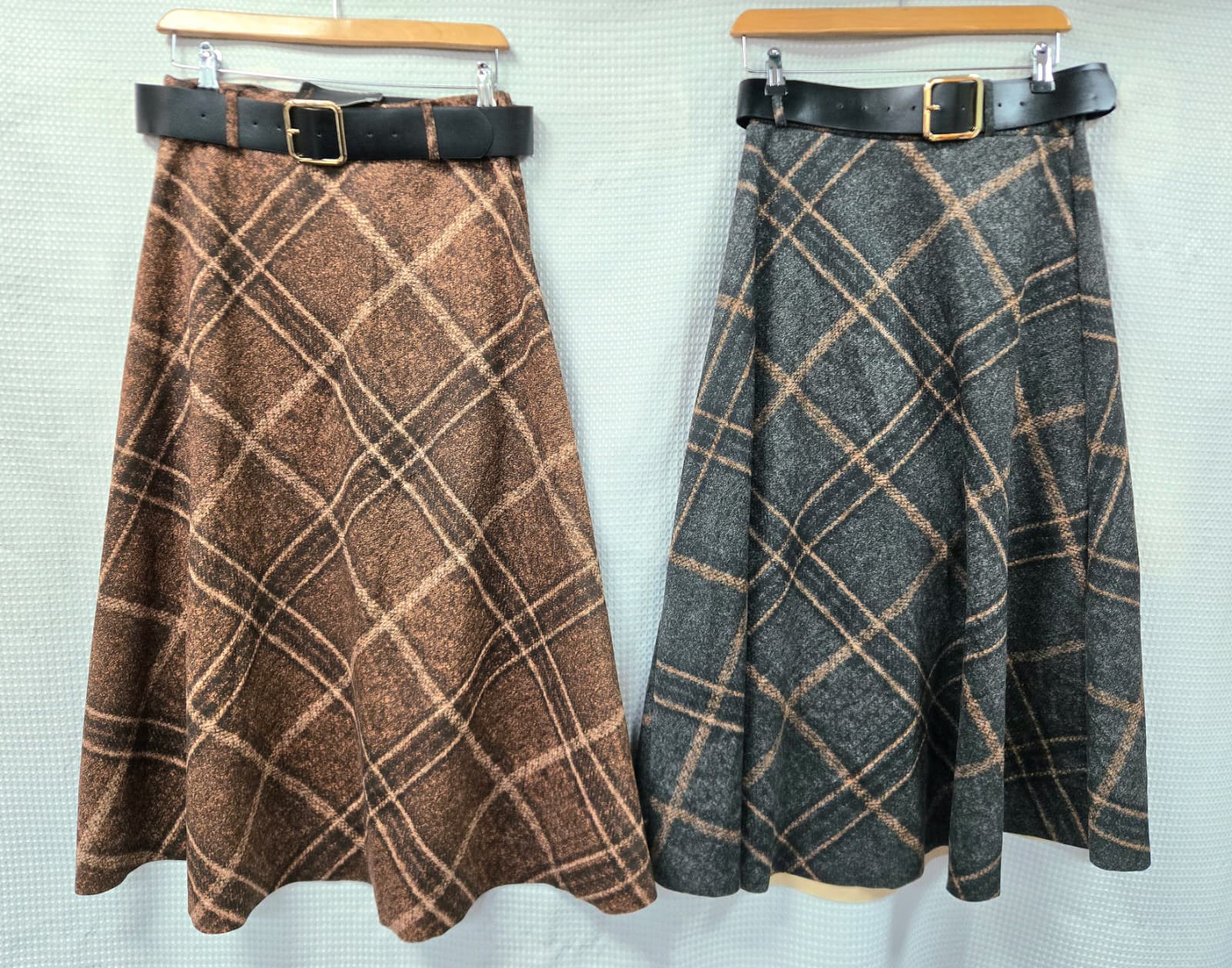 New arrivals Trendy and stylish tartan check printed suedette skirt with pu leather look adjustable belt. Relaxed fit. One size 8-16 UK. Super soft touch. Top quality. Made in Italy. Cols- chocolate and grey. Sold any colour any quantityKM23296